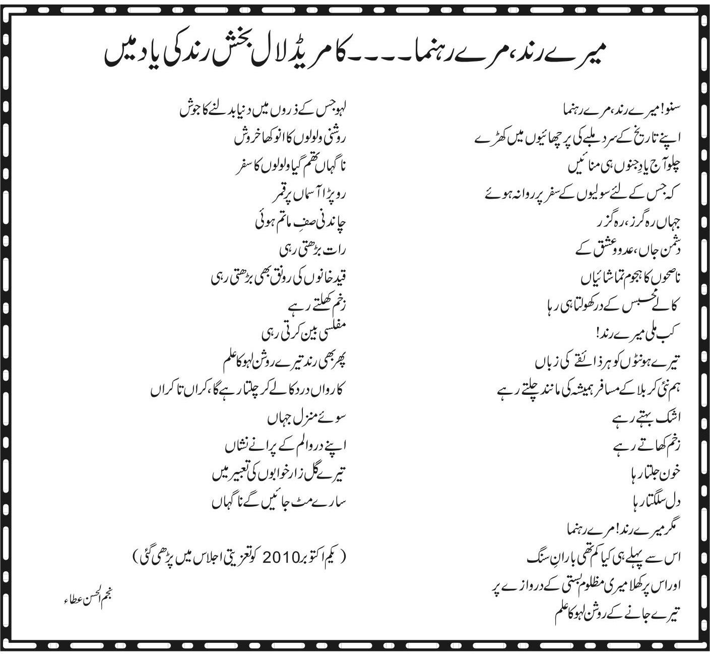 A poem for Laal Bukhsh Rind by Najam-Ul-Hassan Ata